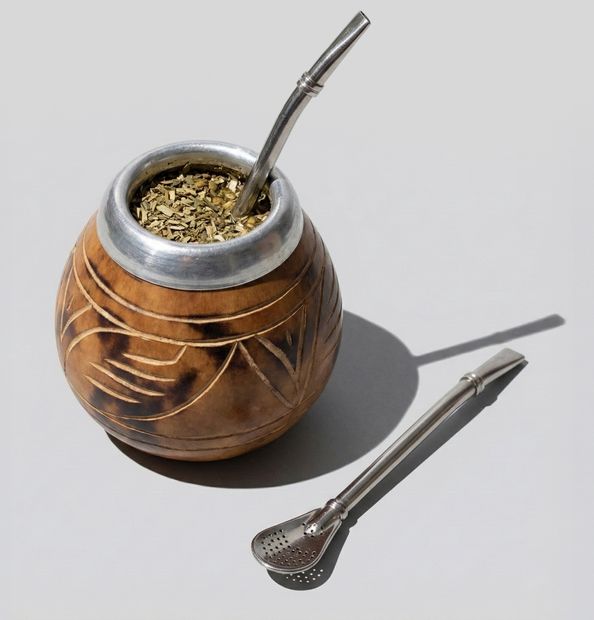 - Fedd le a kalabaszát a tenyereddel, fordítsd vízszintes helyzetbe, majd óvatosan rázd meg, hogy a maté finom részei az aljára kerüljenek, és ne tömítsék el a bombillát.