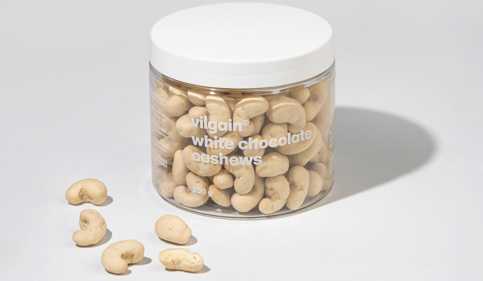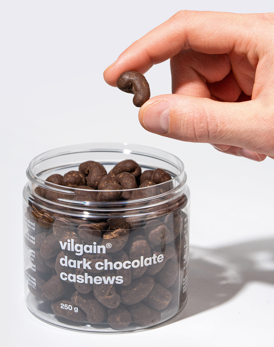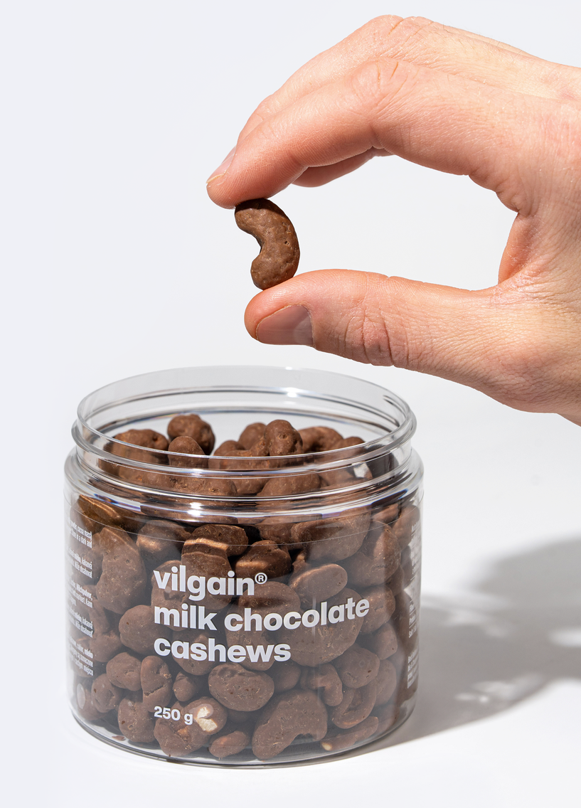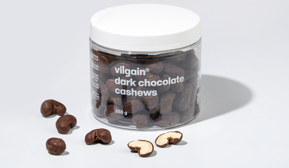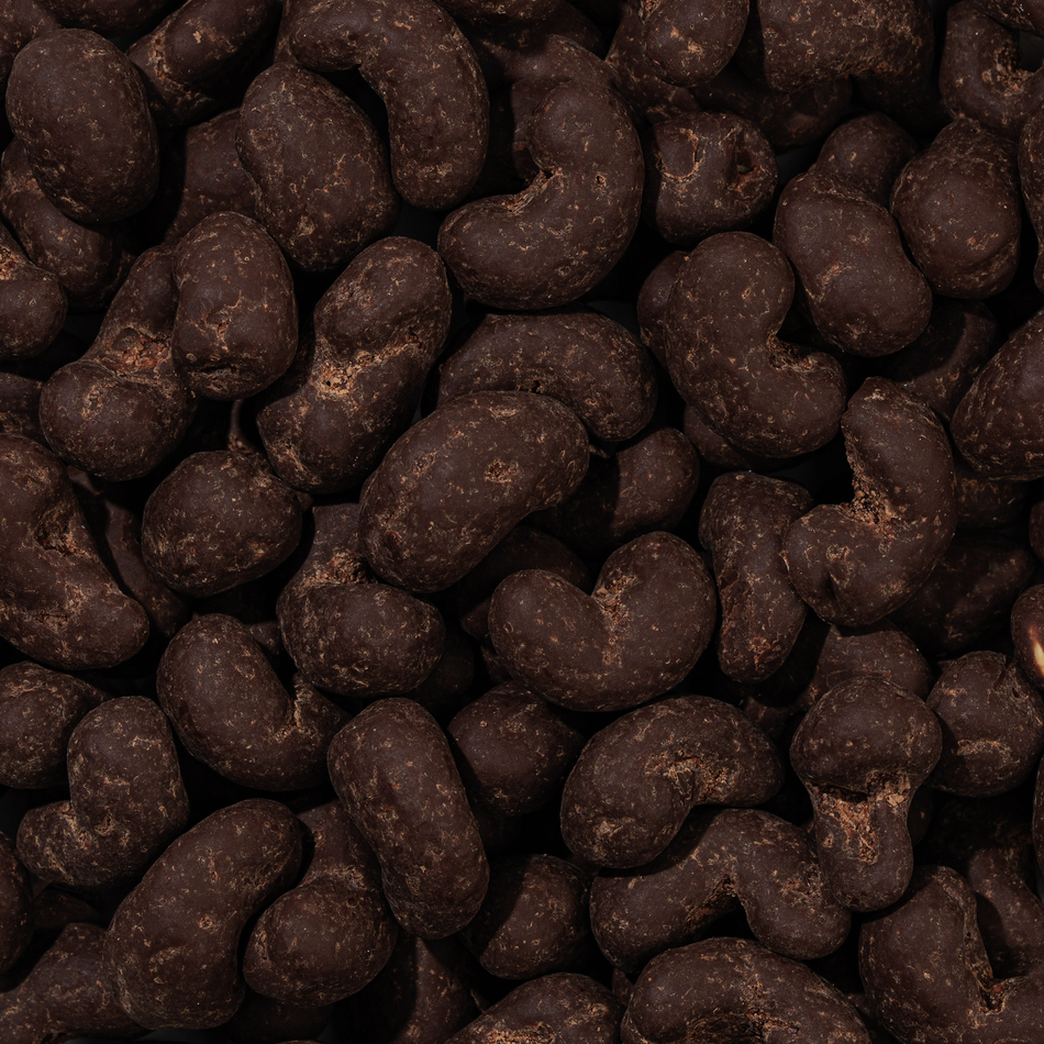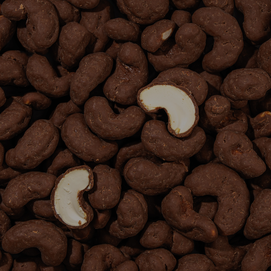 Kesudió csokoládéban – kézzel szedett kesudió vastag csokoládéval bevonva, máz nélkül, kis tételben készítve a maximális frissesség érdekében